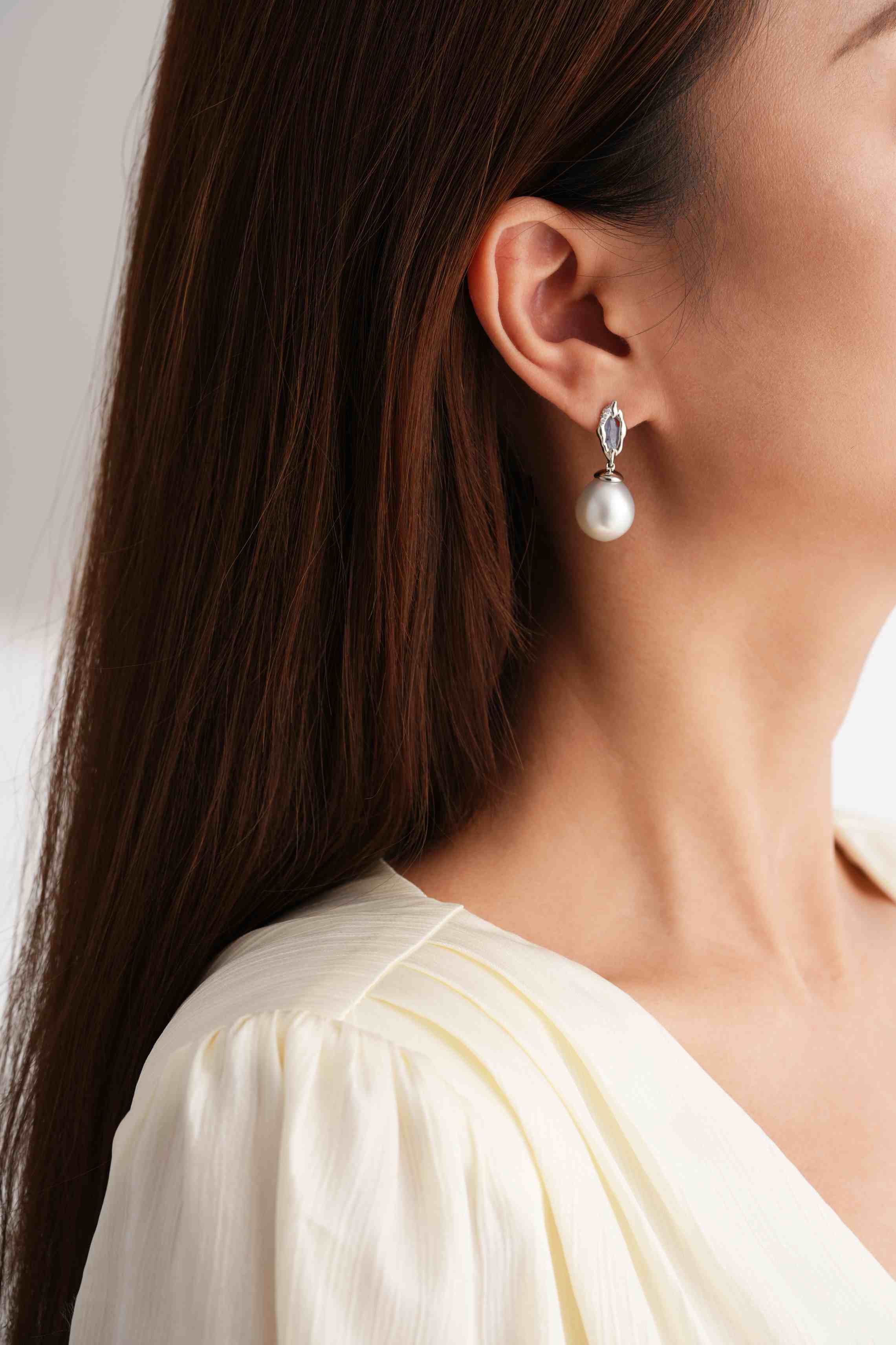 Platinum Sapphire Oval South Sea Pearl Diamond Earrings